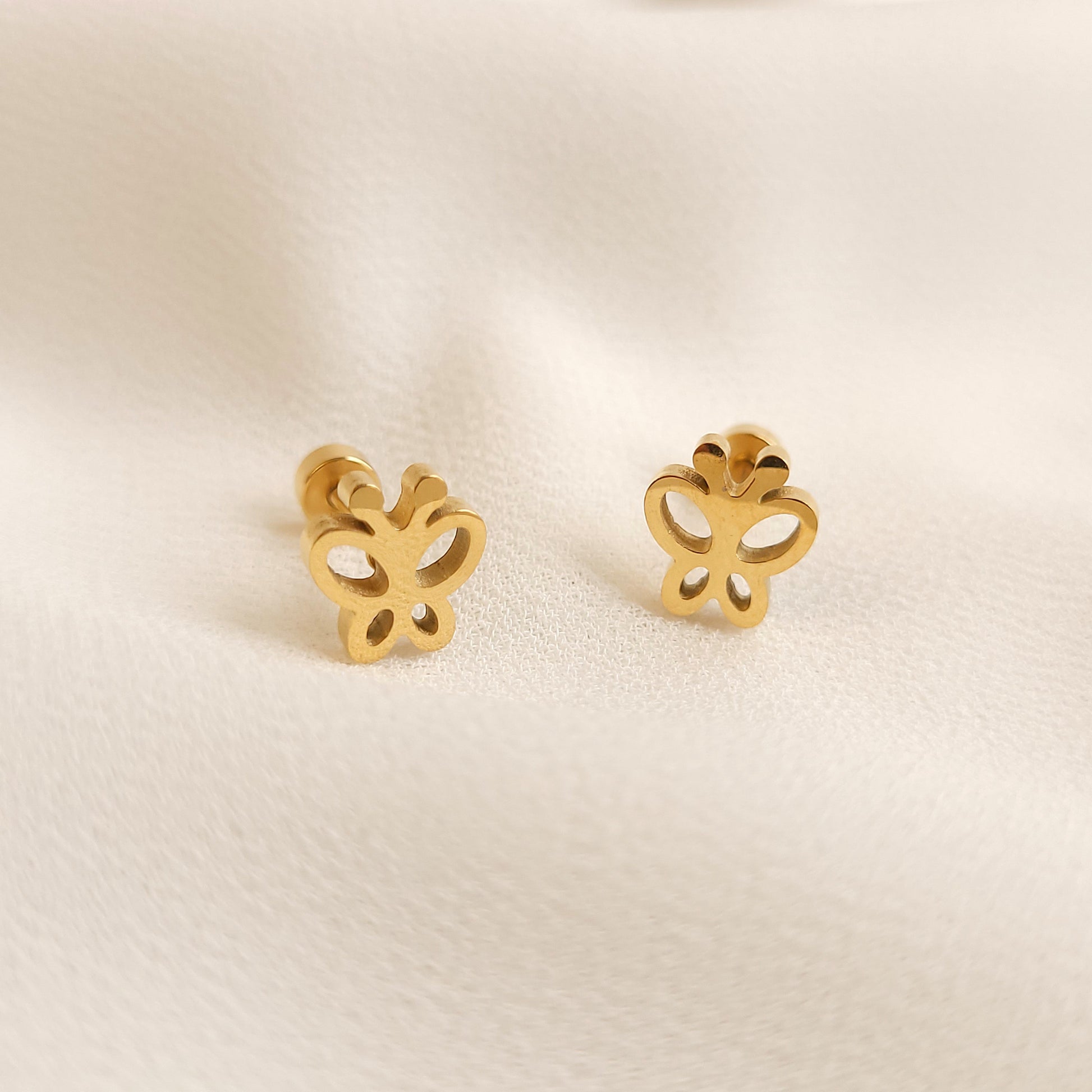 These simple butterfly earrings are sure to be a hit with your little one. With a comfortable flat, screw on backs to help avoid lost earrings, these will quickly become your child's new go to style. Check out Sensalik's other various styles of stud earrings.