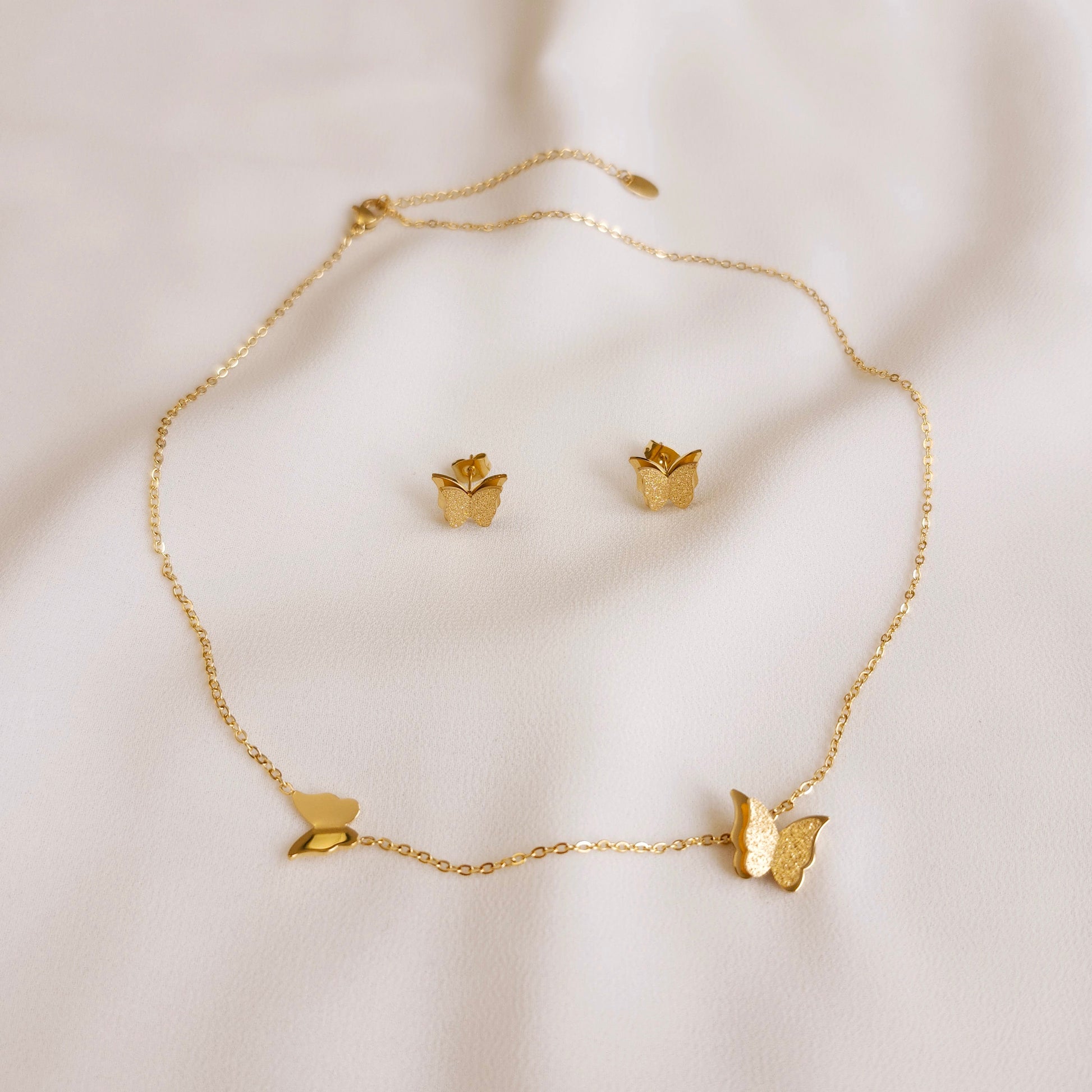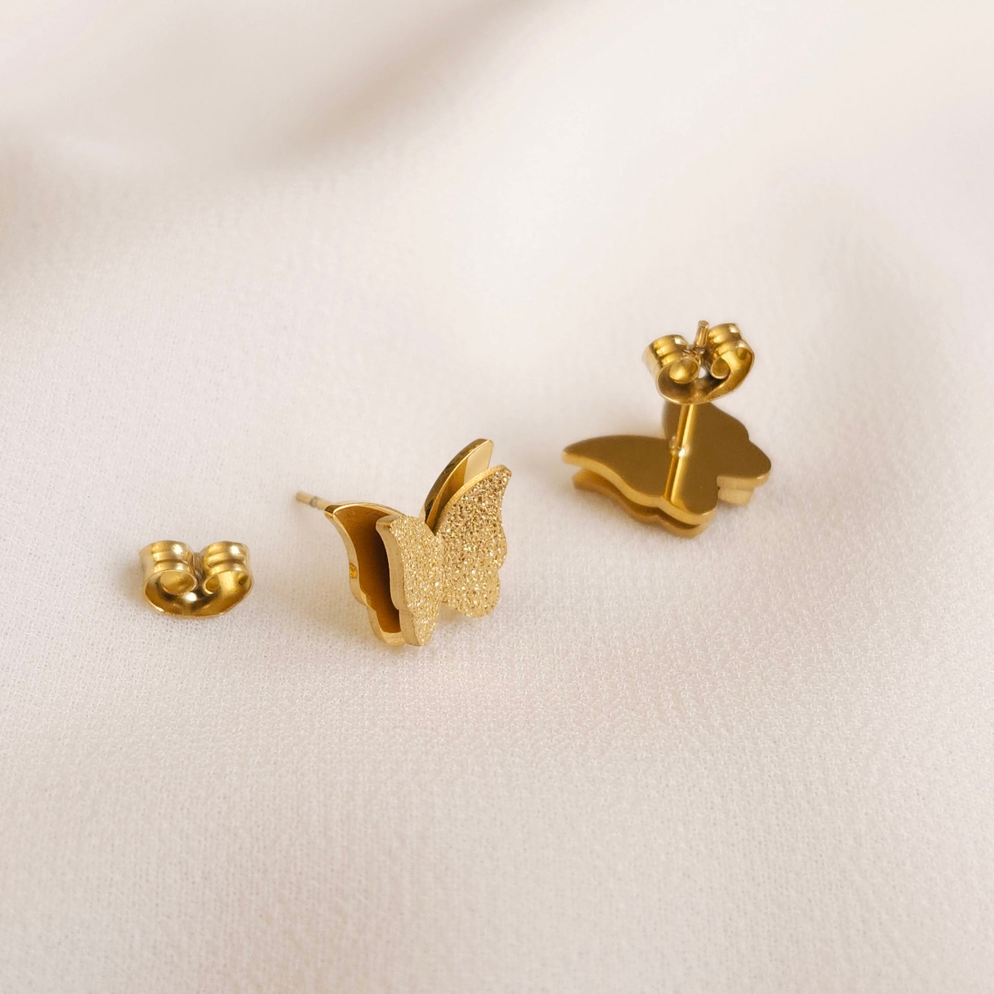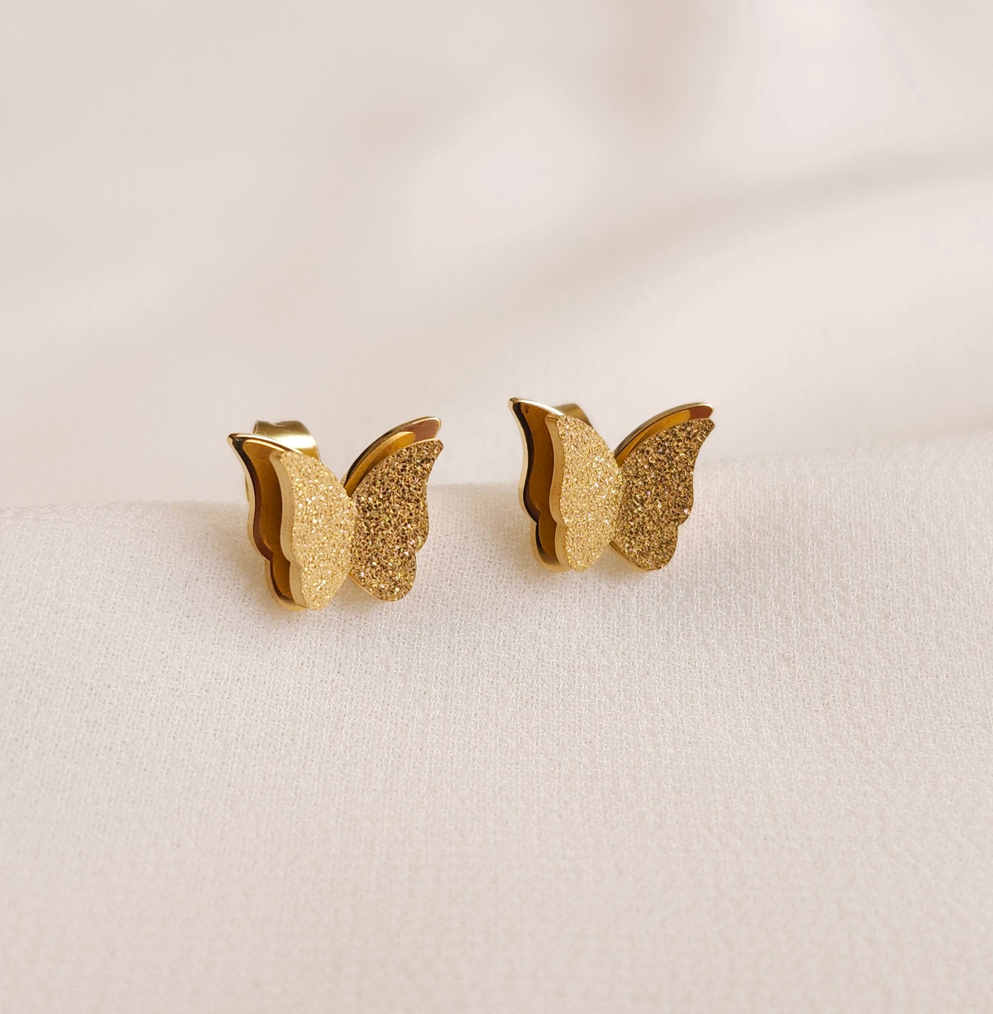 Add a touch of sparkle to your style with our stainless steel sparkling butterfly stud earrings. These dazzling studs feature intricately designed butterfly with a sparkle touch, adding a hint of glamour to any outfit. Elevate your everyday look with these elegant yet playful earrings that effortlessly capture the beauty of fluttering butterflies. Pair it with our Sparkling Butterfly Pendant Necklace